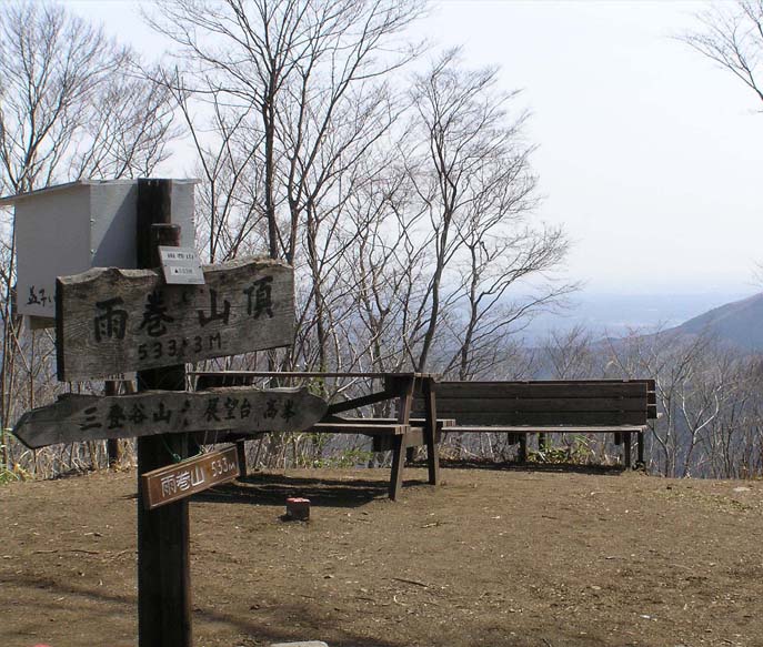鬼怒川下流から東の方向を眺めると山が少ないので、筑波山が圧倒して目立つ。その北側に目につくのが雨巻山。益子の南東、茨城県との境に近い。県道297号、大羽から大川戸鉱泉に入る。入った先の駐車スペースから、林道の山に入る。登山ルートは、いくつかあり、よく整備もされていて、ハイカーを多い。沢沿いにしばらく歩くと、沢を行く道と、山に入る道との分岐があり、滝があるといわれる沢道を避け、右折して山に入った。桧や雑木林の中を斜めに登って、30分ほどで峠に出る。ここから尾根の雑木林をたどり、急な登りで肩に出る。上下して先に雨巻山山頂、峠から30分ほどの登り。533mの山頂は広く、ベンチもあり、南東方向は開けて展望できる。雨巻山からは、元の峠まで戻り、ここを直進して、三登谷山に向かう。峠からの尾根道は歩きやすいし、樹間からの展望もいい。尾根が岩混じりの細道になってきて、ロッククライミング岩場の展望台を過ぎ、登り返すと三登谷山頂上(433m)。途中、分岐点などあるが迷うことはなく峠から30分ほどのルート。山頂は狭いが、近くの展望個所からは、那須、日光の山、益子周辺の平野の広がりが望める。返りは元の峠に戻り、下った。花の山としても人気があるようで、早春、ダンコウバイの黄色の花が樹間を飾る。この山の名物、ミヤマシキミはまだ蕾だった。春には、ナガハシスミレ、エンレイソウ、ヒメシャガ、ミツバツツジ、ヤマツツジが愉しめるとガイドにあった。