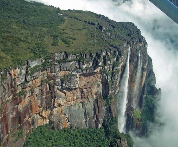 に及ぶ。NHKのドキュメント番組を見ていたら、一か所登りルートがあり、登ってから反対側のエンジェルフォールの落ち口まで10日かけて歩いていた。テレビ初めてという秘境のルートで、テーブルの上とはいえ、山あり谷ありの嶮しい踏破の番組だった。滝が発見されたのは、1937年、米国人ジミー・エンジェルの飛行による。彼の名前からエンジェルフォールと呼ばれている。20世紀まで見つからなかったのは、ギアナ高地が秘境な上、滝はテプイに深く切り込んだ悪魔の谷の奥に位置していて、辿りつくのが困難だったからだろう。