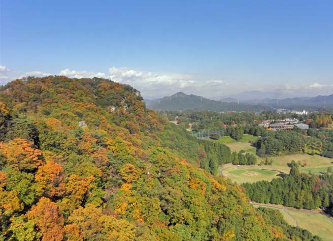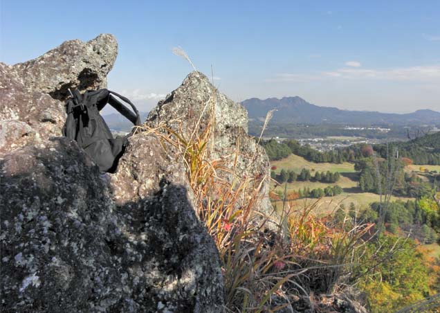岩山は、鹿沼の西、市街を縦断する国道293号線から、古峰神社に通ずる鹿沼日光線に分かれ、1.5km程走り、日吉神社を目指すと、ここが登山口。田園地帯が広がる中の独立峰で、上の写真のように穏やかな山並みに見える。低山ながら、登ってみると、名前の通り厳しい岩山。