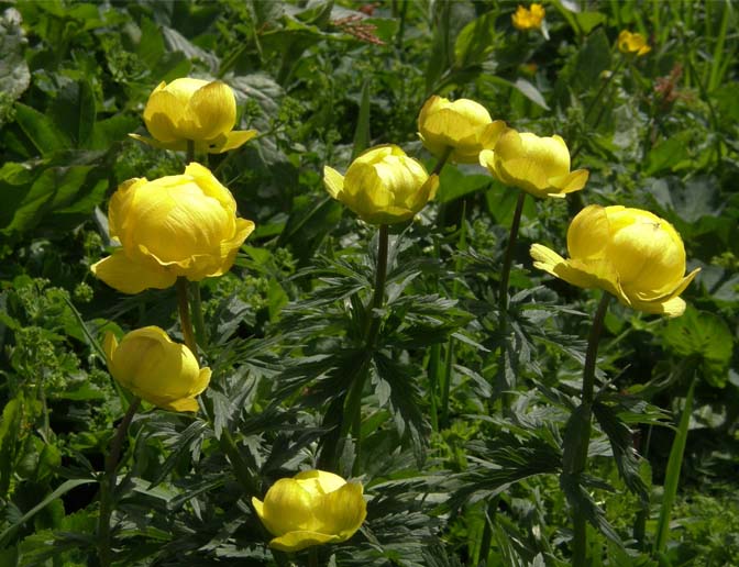 ハイキングは、クライネシャイデックから、登山鉄道のウェンゲアルプ駅までの約6km、2時間余りの下りトレッキング。後のユングフラウ〜メンヒ〜アイガーの連峰、前面のシルトホルンなど雪山の連なりが望め、足元は一面の花園で、急斜面が少なく快適に歩けた。高山植物の花は、教えてもらいながら、メモをとったが、ここには書ききれないほど、種類が多い。チョウノスケソウ、ハクサンチドリといった日本でも馴染みの花もあったが、大部分は日本で見られない花だ。ありがたいことに、花園に自由に入り込み、写真撮影ができる。日本でも、若いころの山旅では、自由だったけれど、今はどこもロープで囲われている。ひとつだけ、大輪で印象に残った黄色の花を載せる。トロールブリューメ(グローブ・フラワー)といわれ、ラナンキュラスの高山種のようだ。教えられる花の名前は、学術名みたいで、地元の人たちの命名と違うのではと思う。あるいは、地元の人たちは、花の名前気にしないとか。
