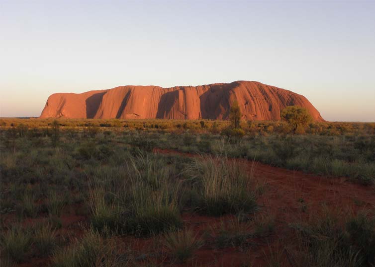 ウルルは、朝、赤く染まり、夕日で紫から黒に変わってゆく。サンライズ、サンセット それぞれの観覧場所があり、観光客でにぎわう。夜、アウトバックの光のない大地の上、星が一段と煌いて、南十字星がはっきり見えた。