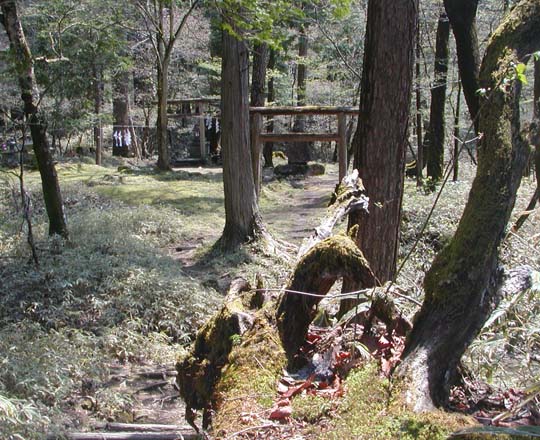 古峰原の奥に、深山巴の宿(写真3枚目)という勝道上人以来の修行の場所が残る。