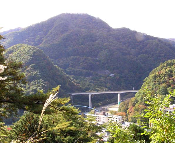 川治温泉の湯につかり、遊歩道を散策してみるといったウォーキングの山歩きになる。国道121号で、川治温泉街を抜けたころ、野岩鉄道の川治湯元駅に向け左に入り、鬼怒川に向け下ってゆくと、川辺の運動公園、そのさきに鬼怒川に架かる黄金橋に出る。ここが駐車場、黄金橋を渡ると、アジサイ公園、川に沿って下ってゆくと竜王峡に至り、途中から山に入ると南平山への登山口と、ウォーキングには好適な川辺が続く。このアジサイ公園から、鬼怒川、温泉街のバックに見える小高い峰が平方山で、上の写真のように、アジサイの頃には青い花の向こうに尖って見える小さな山だ。駐車場のところからは、男鹿川の河岸にある薬師の湯がある薬師橋を渡る。旅館やお店の間を抜け、国道に出て、左に行くと、警察駐在所が右にあり、その右隣の路地に入る。右回りに登ってゆくと、登りきって左が川治コミュニティーハウス、この建物の裏が、遊歩道入口で、大きな案内図があり、自分なりの行程を立ててみるとよい。一回りするのに1時間ほどだろうか。とりあえず、右回りで、大下沢を右下に、自然研究路が続く。樹木を確認し、春だったらヤシオツツジ、秋だったらカツラなどの紅葉がいいと思う。500mほど歩いて、階段道を登り、あずま家のある第三展望台に出る。展望はそれほど開けてはいない。この先は駐車場に出るようだが、展望台からは下り、途中畑があったり、奥の山々が望める眺望点があったり、下りが続く。途中、第二展望台、第一展望台と進む。途中からの展望は、下の写真のように、温泉ホテルの建物、鬼怒川にかかる野岩鉄道の架橋、大きな山は南平山。秋の紅葉時は山全体が色ずく。第一展望台から下って、右回りの歩道と合流するところに、鶏頂山神社があって、元に戻る。駐車場に戻る手前の、薬師の湯にはぜひ入ってみたい。河岸の露天風呂は、低温だが、ゆっくり浸かって、身体をほぐして帰る。 |