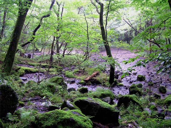 大谷川の支流、田母沢の途中、寂光沢がまた分かれる。寂光の滝を訪れる人は多いが、滝をさらに遡り、源流まで入る人はほとんど今いない。おいしい湧き水の宝庫なのにあまり知られていない。