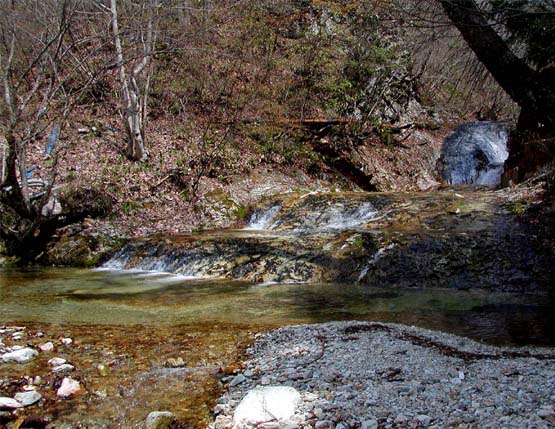 ここのところ日光、鬼怒川の壮大な秘瀑を紹介してきたが、今回は手近な優しい感じの滝の周辺を散策。今市から会津若松に抜ける国道121号、過っての会津西街道は、江戸時代に会津から江戸への最短交易路で人の往来が盛んだった。途中の上三依に、上三依水生植物園の看板と駐車場を見つける。ここから歩いて、男鹿川を渡り、川沿いの道を下るとすぐ植物園の入り口、その手前、右側から流れ込んでいる川に流れの緩やかな滝を見る。七段あって七滝、よく見ないと七つに見えない。なんだか気の休まるような優雅な滝だ。緑が茂って、夏休みの子供の水遊び向けという感じ。写真は、滝がよく写るように早春に撮ったものを使った。植物園では、高山植物の花がいつも見られる。春のミズバショウやリュウキンカから始まり、今は、マツムシソウ、コウホネ、ギボウシなど。植物園から上流にかけて、歩道が続く。かっての会津西街道の一部がここだけ残されていて、昔をしのぶ史跡探勝路になっている。1,2km歩くと国道400号線との分岐にぶつかるが、途中、一里塚や一群の野仏、六面地蔵などが残り、歴史散策が愉しめる。