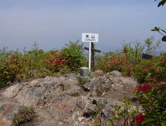 登山口は、宇都宮市子どものもり公園、冒険活動センターの建物の左、スギ林の中に案内がある。ここからスギの中を登る。左から林道に出て回り込むルートがあるが、直接、最初の榛名山を目指す。30分程で榛名山頂上、石祠があるが展望はよくない。小休止で、隣の男山に向かう。男山のほうは、岩山でもあり、高原山がよく見え、次の本山が東に望める。いったん戻り、下って鞍部から登り返す。20分程で本山の頂上、篠井富屋連峰の最高峰、561m(写真下)。岩山の頂上は、展望は開け、那須から日光の山々、南には、富屋に続く飯森山や高館山と、360度の眺望。ピークの周りにはツツジ、シャクナゲの花、宇都宮アルプスという看板もあって、低いながら岩の尾根伝いのアルプス感覚も味わえる。来た道を戻り、稜線伝いに下って標識便りの辿ると飯盛山に通じるが、今回はまた子どものもり公園に下った。2時間ほどのハイキング。この公園からはいくつかの登山ルートがあって、標識も判りやすいので、好みのルートを選んだらいい。二宮堰のある田川、田園の広がりとリンゴ園、山麓の民家、穏やかな山並み、送電塔が邪魔になるが、気持ちのいい景色が山の下からも、上からも眺められる。 |