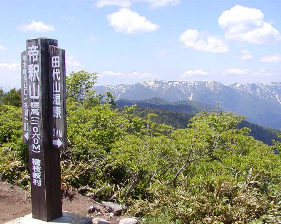 田代山と帝釈山は栃木県と福島県との県境に連なる山の一部。田代山線という林道が峠を越えているが、栃木県からは通行止めになっていることが多い。福島県舘岩側から、湯の花温泉を経由して猿倉登山口まで車ではいる。駐車場は2ヶ所、結構広い。登山口から川を渡り、沢に沿って歩き、水場から登りが続く。しばらくジグザグ、やがて急坂、樹林の中には、ドウダン、ヤシオツツジ、シャクナゲ、ムシカリの花。樹林帯からササに変わって来ると稜線で見晴らしもよくなる。日光連山、高原山が望める。登りが緩くなり、湿地が現れ、木道を歩くようになって小田代湿原。また登りがあって、登りきると突然前方が開け、山上の湿原。花畑、池塘の間の木道を辿ってゆくと田代山山頂の標識と休憩場があるが、ピークという感じはない。小田代湿原から山上の湿原は、高山植物や湿原植物の宝庫。タテヤマリンドウ、チングルマ、イワカガミ、モウセンゴケ、ワタスゲ、ヒメシャクナゲと数えて歩くのも楽しい。また、展望は抜群、日光側から対面の会津駒ケ岳、燧ケ岳の雪が残る山々。山頂からさらに木道を進む。やがて湿原から潅木の中に、避難小屋から森林帯に入り、帝釈山を目指す。潅木の下にミズバショウの残り、シラビソの林の下は、一面のオサバグサの白い花が広がる。他所では見られない花の群落に圧倒される。しばらく尾根沿いの道が続き、倒木や露呈した木の根が邪魔で歩きにくいが、展望がないとしても花には恵まれる。オサバグサが続き、サンカヨウ、ミヤマカタバミ、少し早いがゴゼンタチバナ、コバイケイソウにも出会う。詰めの急坂を登り終えると帝釈山の頂上。眺望は360度。天気に恵まれたら山上の展望台。帝釈山から先の林道へ下りる道が続くが、帰路は元の駐車場へ向け折り返す。登山口から田代山頂上まで1時間半、田代山から帝釈山まで1時間といった行程。 |