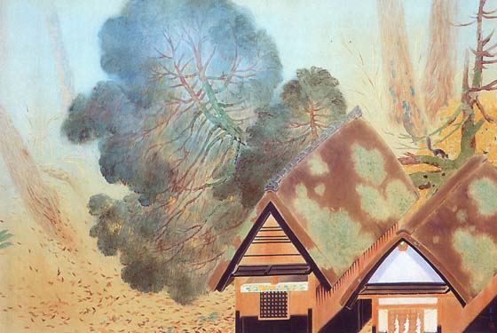 さくら市では、郷土画家を讃え、荒井寛方記念館ーさくら市ミュージアムを建てた(1993年開館)。展示品の多くは、仏画。仏画や仏像の類には、鑑賞力がなく、関心も強くないので、鳥や景色を描いた絵に目が行ってしまう。代表作の「暮れゆく秋」(大正3年)を絵葉書から拝借した。