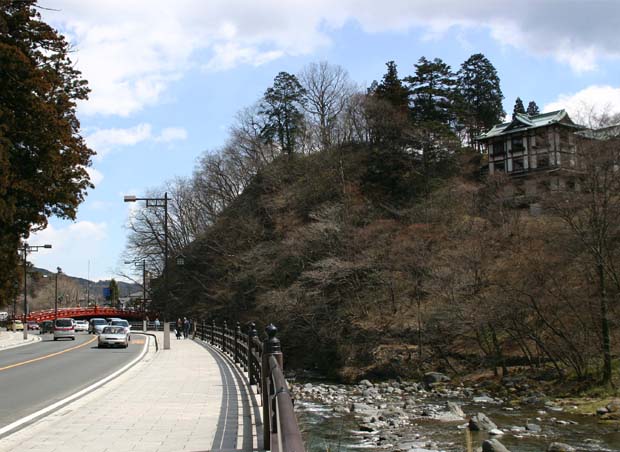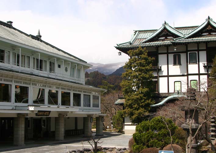 1873年、金谷カッテイジインの開業から、20年後、1893年(明治26年)、現在地に「日光金谷ホテル」が営業を開始した。当時は、2階建ての洋室30、現存する日本最古のホテルという。昭和10年、写真左の別館ができ、次の年、本館も今の3階建てに変わった。別館の3階建て鉄筋コンクリート造りは、大谷川沿いの道路から、神橋や川と森に対照して下から聳えて見える。今年、国の有形文化財として登録されることになった。明治から昭和にかけ、オーナーも金谷善一郎から真一に代わり、電話敷設、自家発電所、ボイラー暖房、T型フォード車の導入など、栃木県の中でも近代化の先駆の役割も果たしてきた。