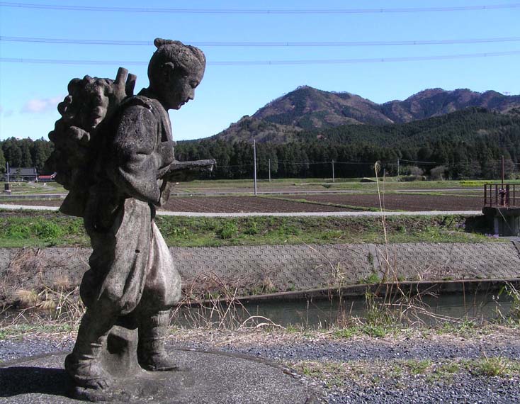 石仏をいくつか訪ねてみた。数の多さに驚く。仏の知識がないことと、石仏に寄せられたその地区の人たちの願いや信仰の理解が足らないことから、石仏には余り身が入らない。石仏のほかに実在した人の像にも出会えるが、こちらはグット数が少ない。その中でも一番多いのは、何といっても二宮金次郎像。金次郎といえば、小学校校庭の銅像、他にも人の集まるところ、商店、民家にもあるのだそうだ。日光市には40ケの像があると新聞で見た。栃木県には、二宮尊徳が住んでいた今市や二宮に、金次郎像巡りの観光案内があるが、小学校が中心、いま小学校は「関係者以外立ち入り禁止」でふらりと訪ねても金次郎には近づけない。あまり人の訪れない場所にひっそりと建つ金次郎に出会ったのでとりあげてみる。