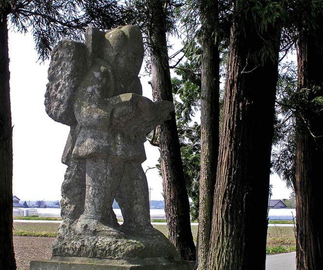 上の石像は、宇都宮市石那田の日光街道北の田川の畔にある石像、スタイルも顔付も端正で、田川と篠井連峰をバックにいい像だ。日光に多い安山岩製だとみられる。田川はここから下流に二宮堰と呼ばれる報徳仕法の記念公園になっている。