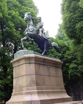 写真の護王殿は、鎮護王院宮にちなんだ神殿建物、奉安殿には、能久親王の軍服乗馬姿の銅像原型の木像が収められているという。銅像は、東京、北の丸公園にあり、写真は公園案内から借用させてもらった。二つの建物は、親王没後に建てられた。