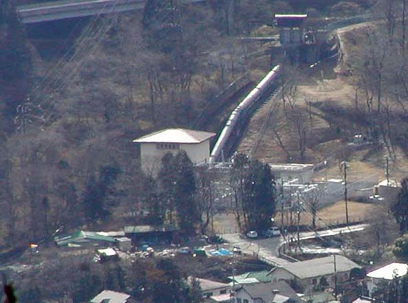 一番古い発電所が、写真上の日光発電所(現在の日光第二発電所)で、琵琶湖、箱根に次いで日本でも三番目に古い水力発電所と言われる。「明治26年(1893)10月に建築されて、東京電力として現存する最初の水力発電所です。」という記念モニュメントが1998年「日光水力発電一世紀」として、発電所脇に建てられた。日光の神橋の上流、含満大谷橋で大谷川を渡って、含満ヶ淵に向かう途中の左側に入った山の斜面に水路と発電所がある。大谷川から取水していて、山の中腹を流れ、落差も24mとそれほど大きくない。写真は、外山から遠望したもの。明治26年、初めて日光の街に電灯が点った記録になる。この頃の電気は、100ボルトそのままで送られていたという。