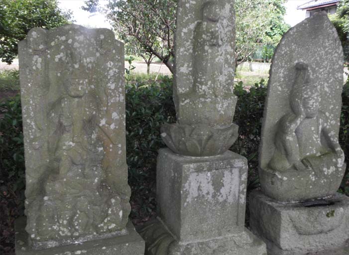 常総市石下の薬師堂のある興正寺の入り口に、庚申塔が如意輪観音像などと並ぶ。年代は確かめられず。