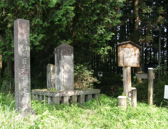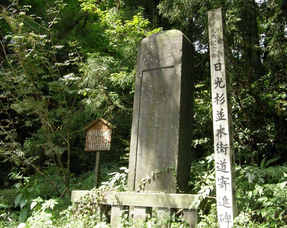 この杉並木を植え付けたのは、松平正綱、寛永2年(1625)から20年かけて植樹したものと伝えられる。彼の功績を称え、寄進碑が建てられている。一つは今市市山口(写真中)に、もう一つは日光神橋から世界遺産標識のある入口のところ(写真下)。日光杉並木は、ほかに例幣使街道、会津西街道にもあり、それぞれ寄進碑が建てられている。