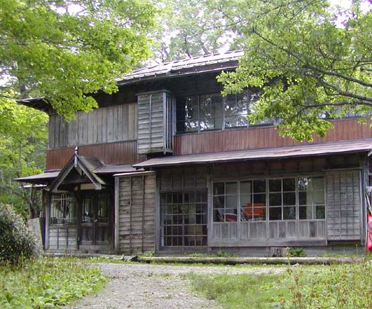 ハンスが愛用した、外国製の猟銃やハーディー社製の釣道具、特にフィッシング用フライのコレクションがホテル「蔦屋」のロビーに展示されている(写真上)。また、倶楽部解散時、唯一残された千手が浜の倶楽部休憩所が残った。ここに住み込んで管理していた伊藤乙次郎は、亡くなって、いま息子の誠さんが住み込んでいる。写真下の休憩所建物は、何度か手直しをして、元のままなのは玄関の一部だけですよと言っていた。初夏、ここはクリンソウの花園になる。観光客が一斉に押し寄せるが、鹿からクリンソウを護るのに大変な苦労をされているようだ。