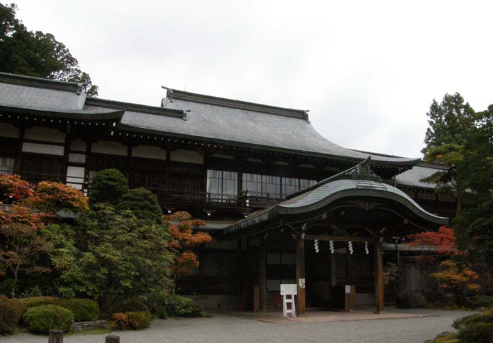 日光東照宮の右の奥にある、この美術館には、訪ねる人も東照宮に比べ少なくなり、庭園に囲まれた静かな木造建築の中で日本美術の鑑賞ができる。この建物、日光東照宮旧社務所・朝陽閣は、昭和3年の完成で、全て杉材が使われている。台風があって、日光杉並木など450本もの杉が倒れた。その杉が使われたと聞く。完成時、杉戸も襖も白木のままだった。日本美術院の大家、横山大観に揮毫の依頼がゆく。大観も日光を訪れて快諾、出来上がったのが「朝陽之図」になる。昭和4年、大観は、中村岳陵、堅山南風、荒井寛方を伴って再度、東照宮を訪れ、この三画家が、以後、社務所に起伏し、70日間揮毫に専念して障壁画を制作したという。美術館と言えば、額や掛軸を並べ、陳列したものが多いが、この美術館の主要な障壁画は、建物の主要部分を構成していて、部屋に溶け込み、立体的な表現になっている。見ていて、絵の中に入り込んだ感じになる。大観の「朝陽の図」は、日光でなく、東京で描かれたようだ。この四画伯の他にも、小杉放菴ほか何人かの画家の作品が鑑賞できる。