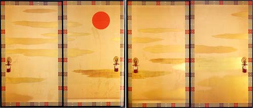小杉放菴と親交が深かった画家に横山大観がいた。大観の障壁画大作が日光東照宮の中で鑑賞することができる。日光東照宮美術館の中の二階奥にある朝陽閣の部屋の襖絵「朝陽之図」は、赤い朝日とたなびく金色の雲だけの絵なのだけれど、朝焼けの中に入ったような気分になり、圧倒される。