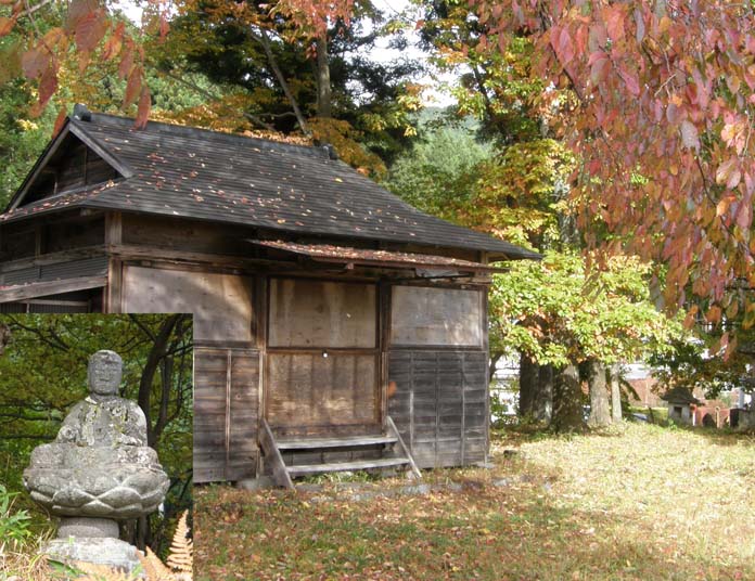 大谷川の左岸、所野の川沿いから段丘を上がって、小学校がある奥の部落を歩くと、薬師堂が見つかる。竜門寺の別院だったといわれるが、この寺は今はない。戊辰戦争で焼かれたという。寺跡に、シダレザクラが残り、春、見事に寺位置を飾ってくれる。薬師堂の名札に瑠璃堂の文字があり、本尊も瑠璃光薬師と呼んでいるという。