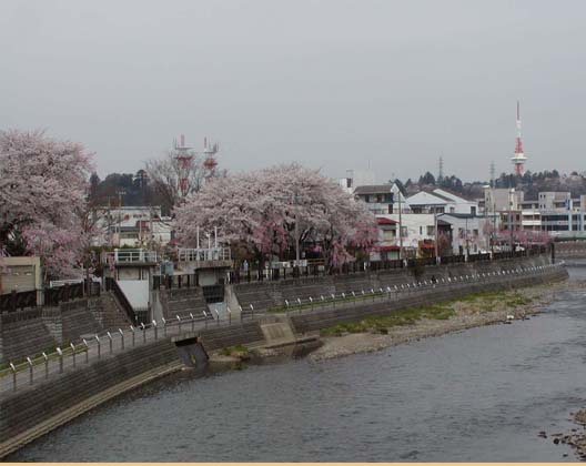 鬼怒川は、平地を流れている間、支流の分岐が少ない。代表的な支流に田川があり、宇都宮市の中心を流れている。宇都宮駅の西、宮の橋の下、整備されてからきれいな川になって歩くのも楽しい。橋の上流には古い桜が残り、また新しい苗木も育ち、桜見ができるようになった。右奥の白赤の鉄塔は八幡山公園でここも桜の名所、街の中を歩くのが好きな人には桜ウォーキングもいい。