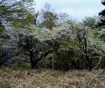 しばらくミズナラや白樺の中を登り、ササ原の開けた尾根に出る。中禅寺湖と男体山、女峰山、眺めながら快適なウォーキングができる。ササ原から樹林帯に入り、登り下りを辿ると観瀑台に出る。ベンチがあって木の間越しに華厳の滝が眺められる。この角度の滝もななかなか良い。ここまでの樹林帯には、春から初夏にかけてヤシオツツジが花を添える。特に最近はゴヨウツツジと呼ばれ人気が出たシロヤシオが見事だ。観瀑台からしばらくモミも混じる樹林の中を登って、ササの平らな道に出てくると、白樺の綺麗な林も抜けて、やがて茶ノ木平の自然植物園に出る。ここにはロックガーデンや高山植物園、湿地植物園があって植物観察には楽しい場所だ。初夏にはアズマシャクナゲも咲き出す。展望台から中禅寺湖と奥日光の展望も申分ない。ロープウェイがあったが運行中止になった。歩いて湖畔に下れるが、車だと明智平に戻ることになる。明智平から茶ノ木平は、登り1時間半、下り1時間ほど。