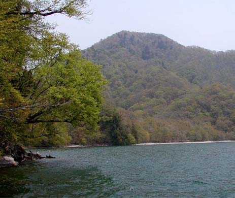 中禅寺湖の奥、竜頭の滝、戦場ヶ原、小田代が原、千手が浜に囲まれた山で、標高1667m。周りの景勝地はどこもシーズンには人が一杯になるが、登り始めると途端に静かな山歩きに変わる。竜頭の滝の上部、駐車場から、竜頭山の家標識のとこが入り口で、この山の家を回りこんで登り始める。日光の山にしては比較的穏やかな登りのずっと林間のコース。登りも頂上も展望はあまり望めない。木の間越しに、左に中禅寺湖、右に戦場ヶ原が見え隠れする。春から夏にかけて、ヤシオツツジやアズマシャクナゲが咲き、登りも楽しい。夏になるとナツツバキやドウダンツツジが見られるようだ。木の花に比べると地の花はあまり見渡らなかった。コバイケイソウの株があったので季節には出会えると思う。1時間半ほどの登り、頂上はダケカンバに囲まれ眺望はよくないが、白い樹林に囲まれ場所も広いので気持ちはよい。登りと反対側のルートを通り、やはり樹木の中を下る。峠で分岐して、小田代が原方面への下りと中禅寺湖への下りと分かれるが、沢筋を下って中禅寺湖の熊窪へ出た。だんだんミズナラの大木が現れ、湖畔からは右に折れて千手が浜に出る。反対に左に向かうと1時間半ほどで竜頭の滝に戻る。千手が浜へは30分足らずで出られる。ここからはバスを利用して石楠花橋で下り、湯川を歩いて竜頭の滝に下ってもよい。千手が浜から西ノ湖を巡ってみるのもよい。