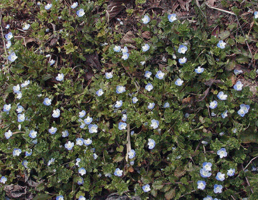 観桜庵の向こうに見えるのは、筑波山。桜を仰いで見るだけでなく、足元では野の花が一杯咲きだしていた。タンポポの黄色、オオイヌノフグリの空色の小さな星のような広がり(左写真)。
