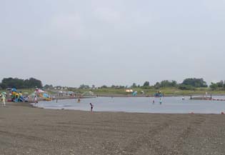 鬼怒川の宇都宮市内の流域には、野外活動のための沢山の施設ができている。運動広場が多いが、軽飛行機場やこのビーチなど他にないフィールドもある。川の土手はサイクリングロードにもなっていて、歩くより自転車で走ったほうが快適だ。ウォーキングには、行程が長くやや単調かもしれない。野鳥が好きな人には、バードウォッチングに公的な場所もあり、いろいろな鳥に出会える。いま、このふれあいビーチの隣の貯水池の中に島があり、コアジサシが子育て中。沢山の鮎釣りが鬼怒川を占拠しているとなりで、親鳥の魚狩のダイビングが見られる。